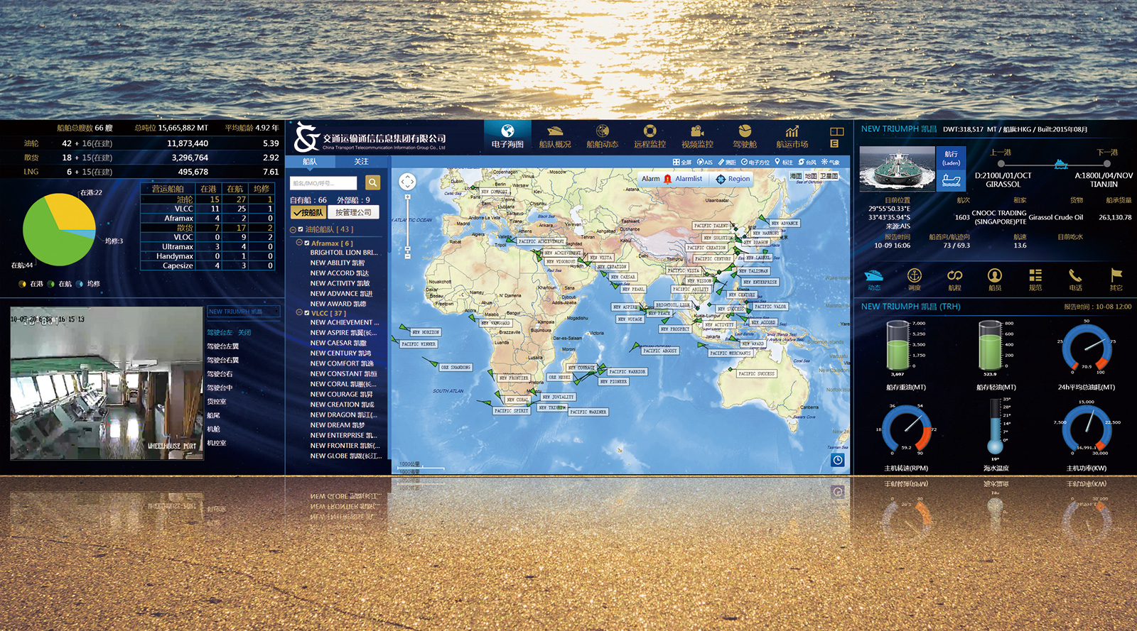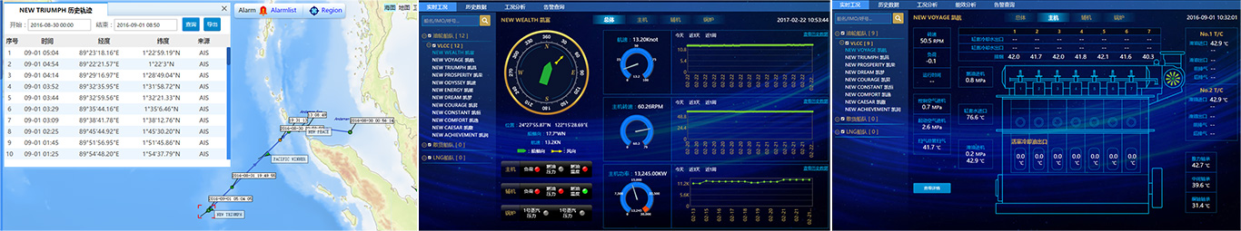 船隊(duì)運(yùn)營(yíng)管理可視化平臺(tái),該平臺(tái)的是以海圖為基礎(chǔ)平臺(tái),可以單船、同型號(hào)姊妹船舶、同噸位不同型號(hào)船、船隊(duì)等為經(jīng)營(yíng) 管理的核算單位,將船舶位置跟蹤、位置監(jiān)控、視頻監(jiān)控、船舶安全、氣象服務(wù)等航海信息服務(wù)與經(jīng)營(yíng)生產(chǎn)數(shù)據(jù)信息集成整合, 提供船舶工況監(jiān)控和生產(chǎn)數(shù)據(jù)分析,是服務(wù)于船舶安全管理和生產(chǎn)運(yùn)營(yíng)的一體化可視平臺(tái)。